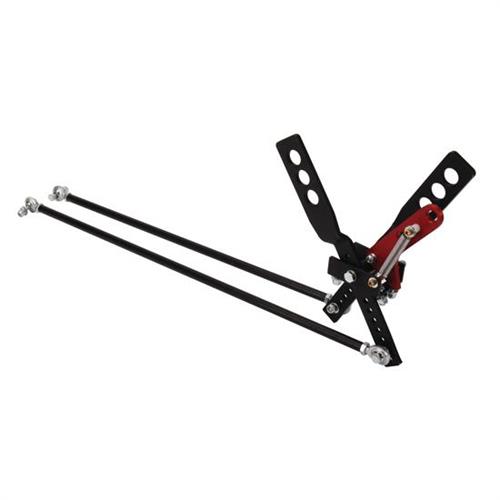 These stealth black two-lever locking shifters feature a spring loaded arm that allows you to make sure your transmission never pops out of gear during a race. Comes complete with a 20" and 24" rod, 4 heims and jam nuts.